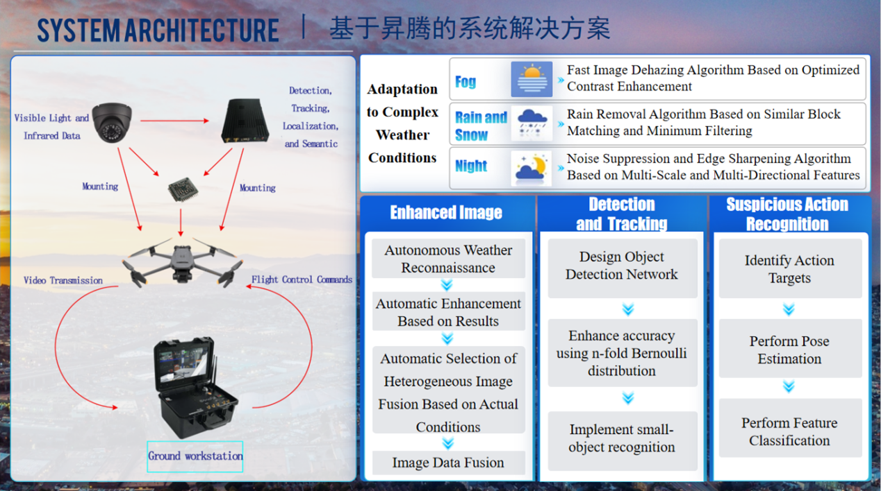 在高教主赛道国际项目中喜获银奖的智慧哨兵项目团队,由51吃瓜网 周清、吴杰、肖锋、蔡长龙、王琳、刘露等几位教师共同指导,贾宇龙、陈漂洋等15名同学参与。该项目的Smart Sentinel是基于华为昇腾AI平台的机载智能要地监测系统,针对核电站、航天发射场等重要设施面临的低空无人机入侵威胁,通过集成光电吊舱、无人机平台、昇腾AI模块和地面工作站,实现全天候多角度实时监控与自动化目标检测、跟踪、定位及警示驱离。系统采用全国产化硬件(华为昇腾处理器)与自主算法体系,具备技术自主可控、机动性强、快速反应、协同能力强等优势,可适应复杂环境。“智慧哨兵”项目的获奖,充分体现了该团队在前沿人工智能技术与国家重大基础设施安全需求紧密结合的创新能力。