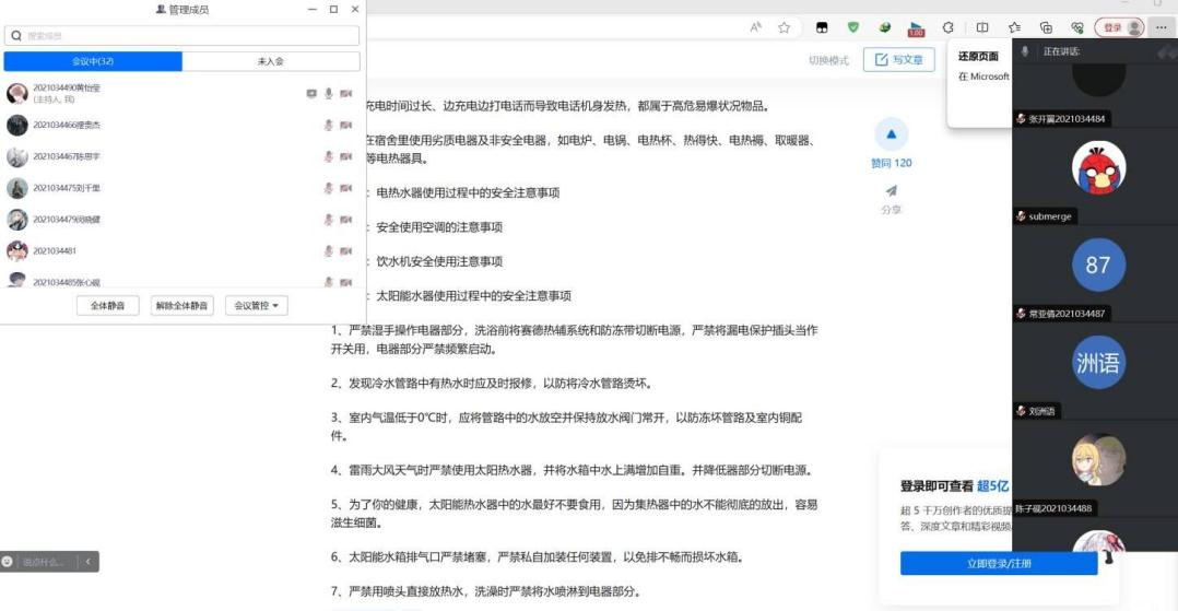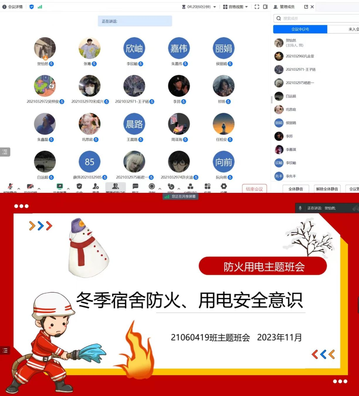 各班级于近日通过线上线下相结合的方式召开了以“防火、用电安全”为主题的班会。