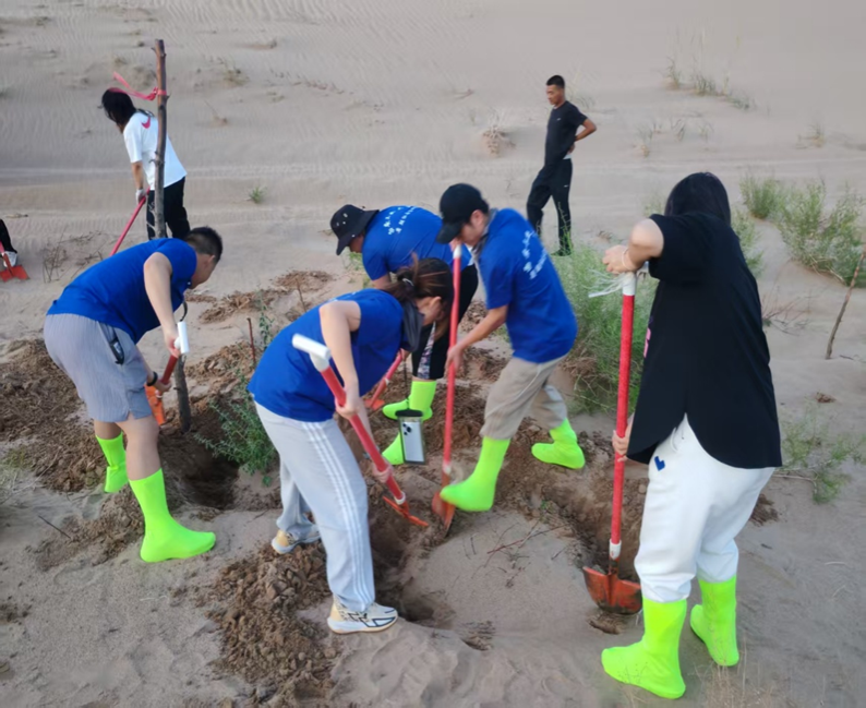 “青春筑绿,陇原生态行”实践队,赴甘肃省武威市民勤县参与“沙退绿进,我们在行动”防风治沙志愿活动。此次活动旨在凝聚青年力量助力生态保护,增强大学生对防沙治沙紧迫性的认知。