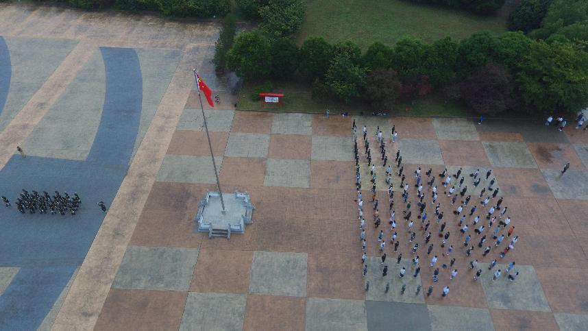 晨曦微露,蒙蒙细雨中,全体成员准时来到广场,在工作人员的组织下,按照学校疫情防控要求,全体观礼人员井然有序的排列在广场上,一番准备过后,升旗仪式正式开始。