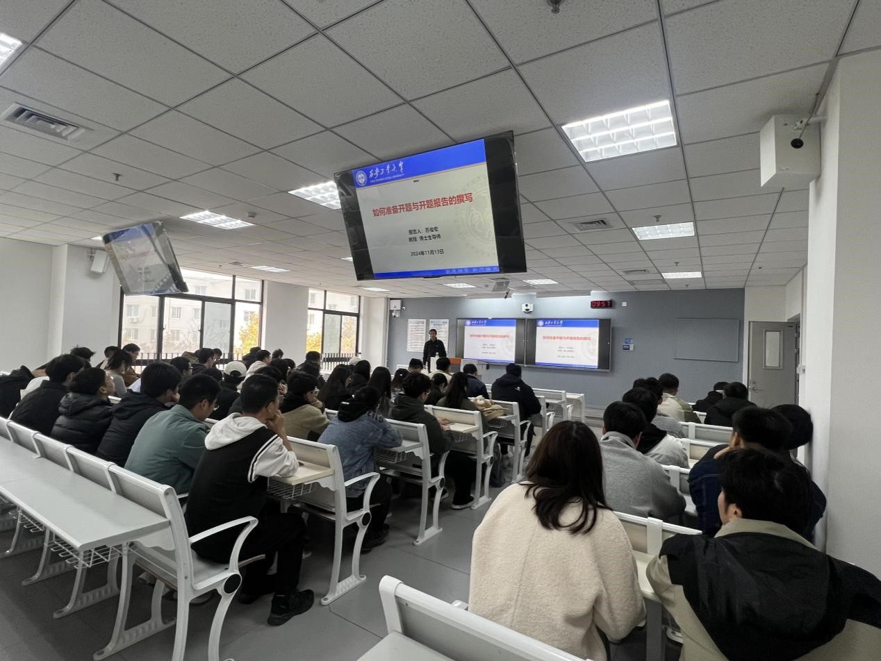 在教9-319室举办题为“如何准备开题与开题报告的撰写”的学术讲座,由苏俊宏教授主讲。