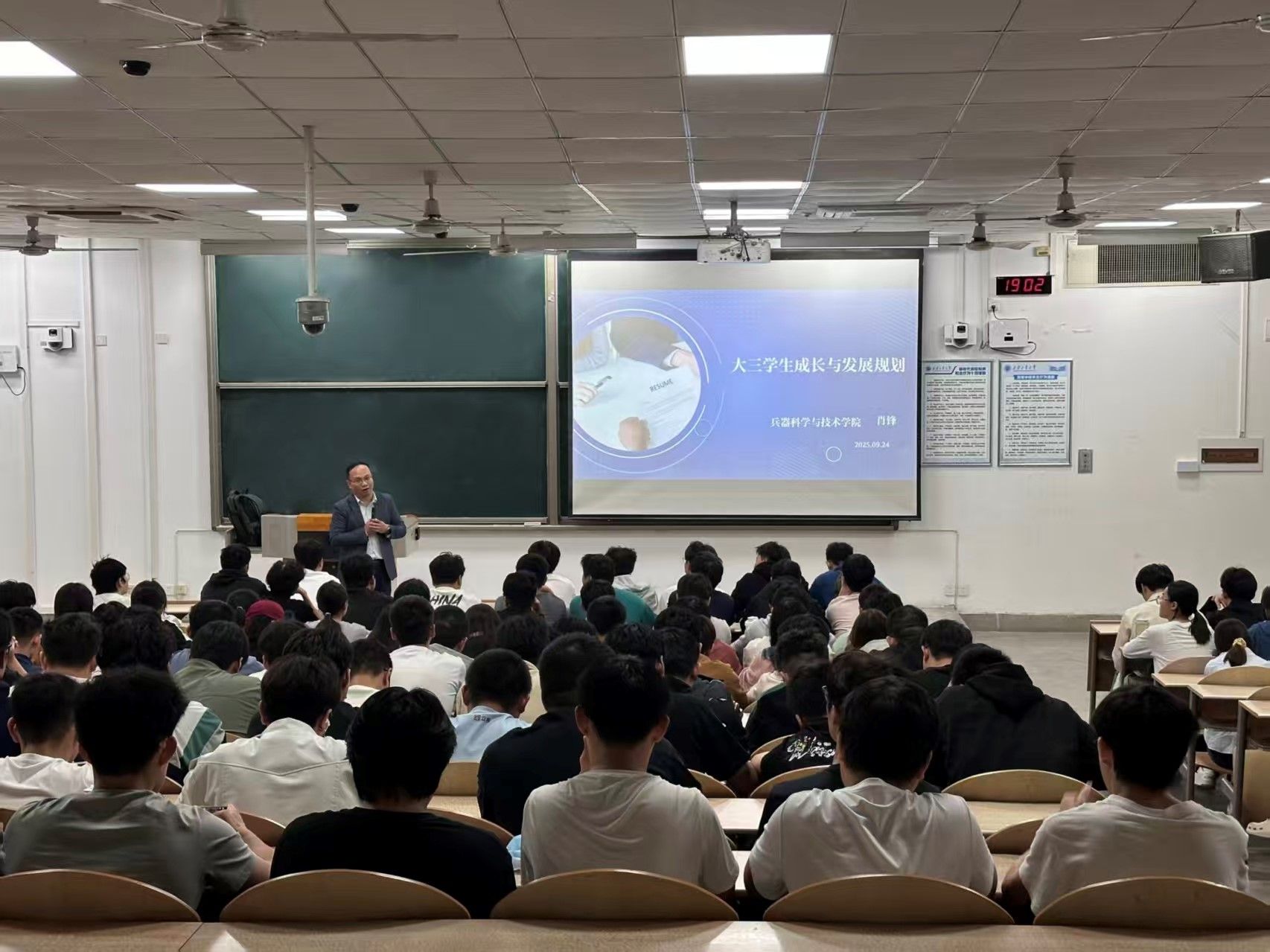 肖锋从大三定位、专业学习、未来规划三个方面入手,首先指出了大三在大学四年以及人生中的重要性,面临着就业、升学的道路选择,希望同学们进一步明确自己的规划,并邀请杜鑫与赵婧臣两位同学和现场同学分享了自己的未来人生规划。随后,肖锋强调大三的专业课学习要从专业核心知识的强化与知识体系的拓展两个方面展开,主动去寻求资源提升学习内驱力,变“被动接受”为“主动深耕”。讲座中,肖锋结合自身丰富的学术和工作经验,向同学们介绍了兵器专业本科生职业发展和考研深造的现实情况,这不仅帮助同学们洞察自身专业的就业前景与发展脉络,更促使大家在大学重要的阶段中能够全力以赴地投入到学业与实践,为将来的职业生涯做好全方位准备。最后,在总结与交流环节,肖锋寄语同学们永远保持阳光的心态,保持自信,坚持“大三不犹豫,未来不后悔”的信念,明确方向,主动利用、寻找资源,并承诺51吃瓜网
